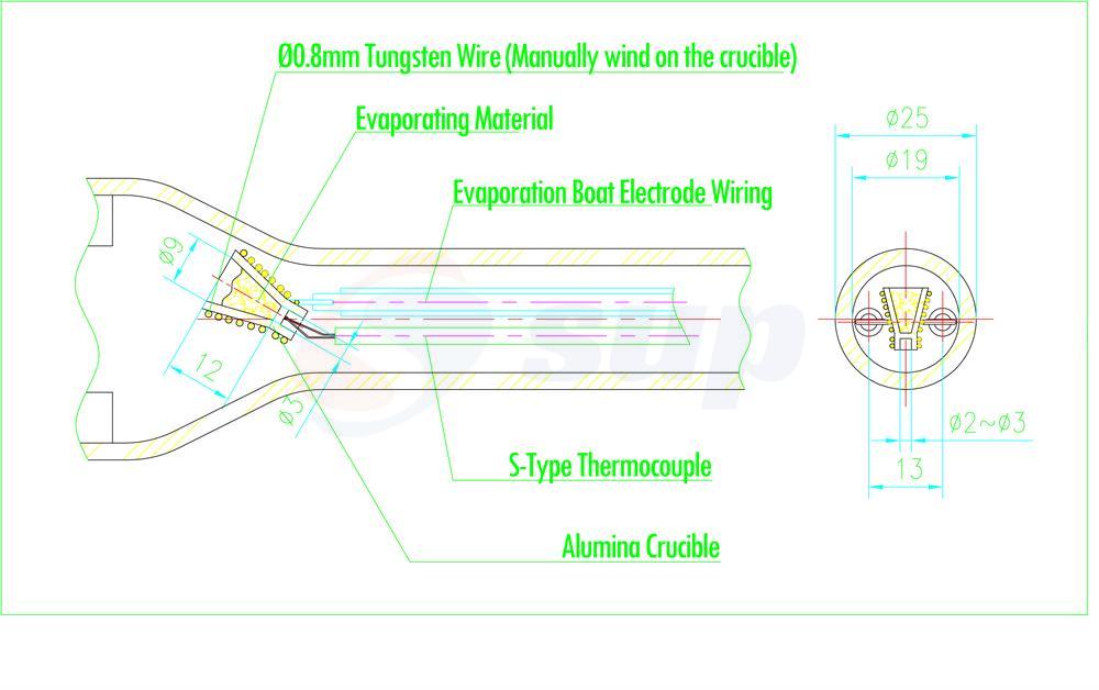 蒸发舟 | - 工作温度:最高1100ºC(持续时间<1小时),连续加热时为1000ºC。 - 0.7ml铝土矿坩埚,周围环绕钨加热线圈。 - 插入K型热电偶,以确保源材料的准确温度测量。 - 工作电流:<= 30 A。