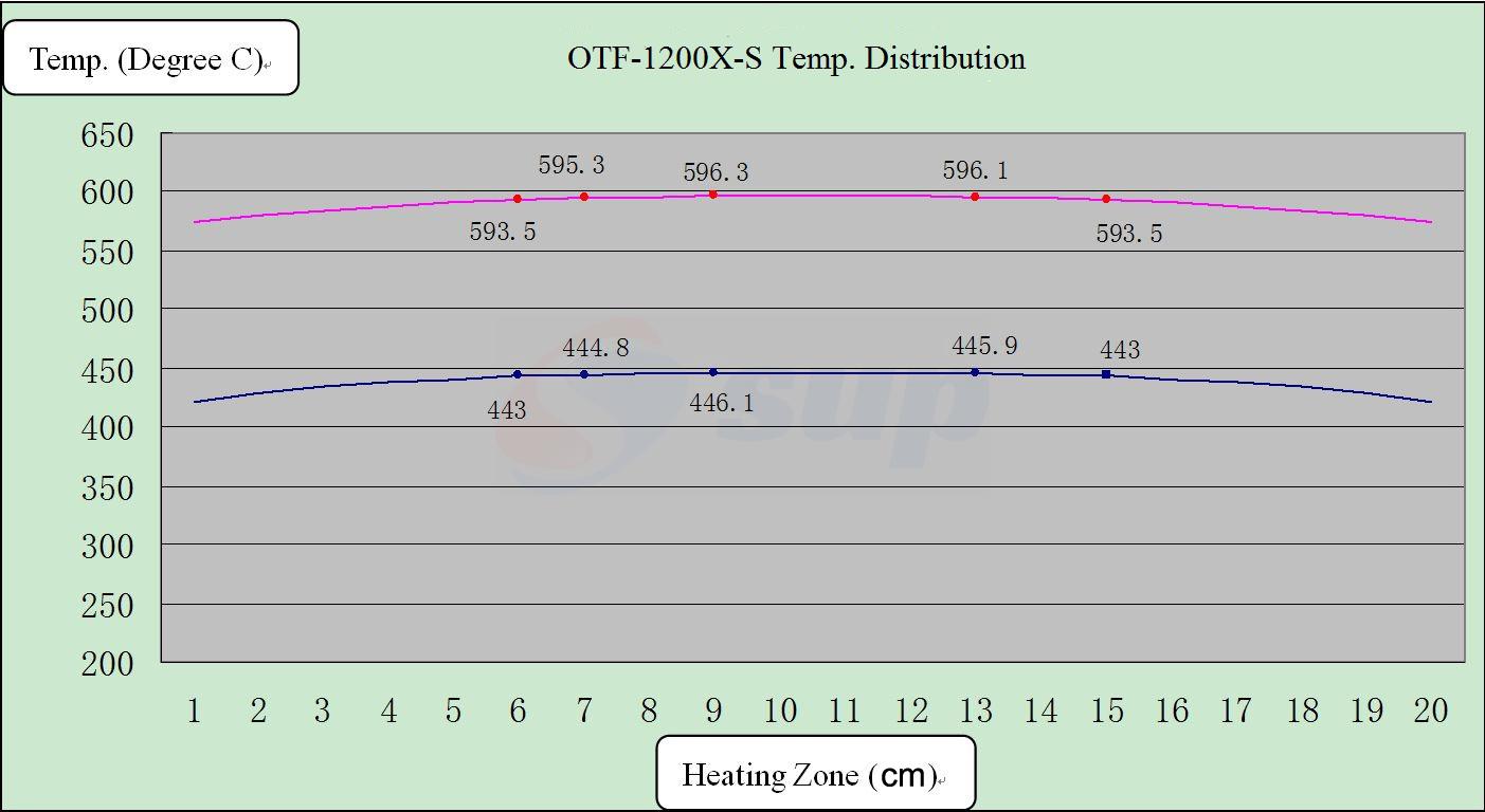 加热区域长度 | 8英寸(200毫米),单区。下图显示了整个加热区的温度分布。
